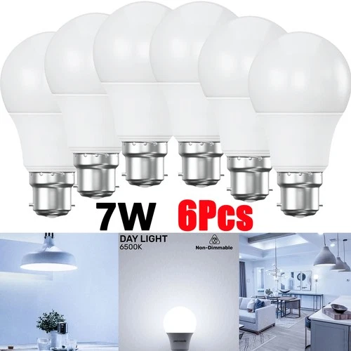 6x B22 LED Light Bulbs Cool White 6500K 7W ≈60W Super Bright Bulbs Energy Saving