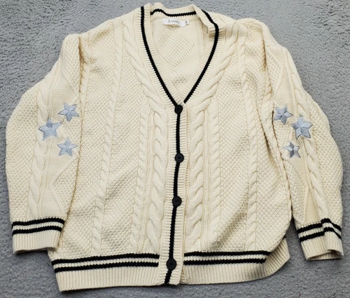 ANRABESS Cardigan Womens XL Tan Cable Knit Embroidered Star V Neck Button Front
