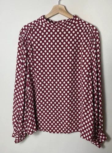 John Lewis balloon sleeve brown white polka dot blouse size 20