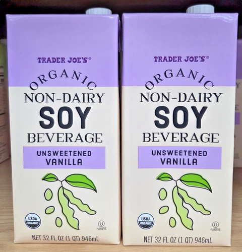 Trader Joe's Organic SOY Beverage Unsweetened Vanilla 32fl oz 946ml (2 Cartons)