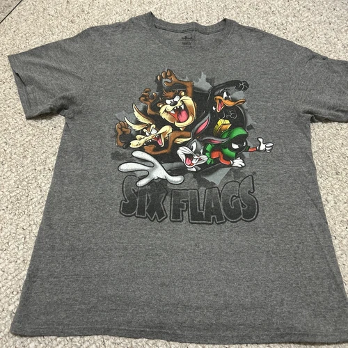 Six Flags Looney Tunes Grey T-Shirt Size XL Kids