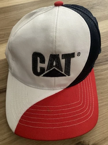 Vintage Caterpillar Cat US Flag Logo Hook & Loop Closure Hat Cap Red White Blue