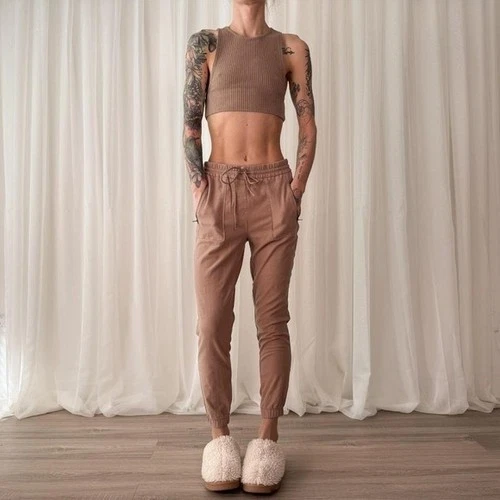 Tan Jogger Pants Lounge Trousers Minimalist Drawstring Pants CC California XS