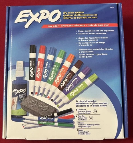EXPO Chisel & Fine Tip Low-Odor Dry Erase Marker Eraser & Cleaner Kit NEW Sealed