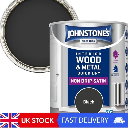 Johnstone's Satin Finish Black Paint 750ml Water-Based Non-Yellowing Fast Dry