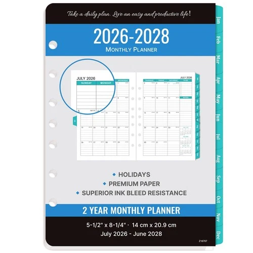 2026-2028 Monthly Planner Refill - Inserts 5-1/2" x 8-1/2", black