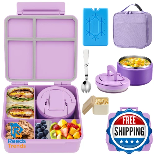 MAXSO Bento Lunch Box Set with 8 oz Soup Thermo, Kids Leakproof 4 Compartments H