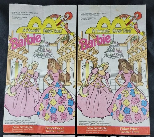Vintage McDonald’s Happy Meal Lunch Bags Lot of 4 Barbie & Hot Wheels