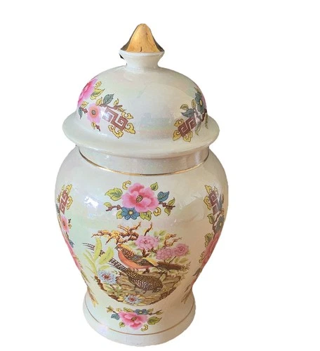 Vintage SADLER Lustre Lidded Ginger Jar ~ Peacocks/Geese/Flower Design~Ht 17.5cm