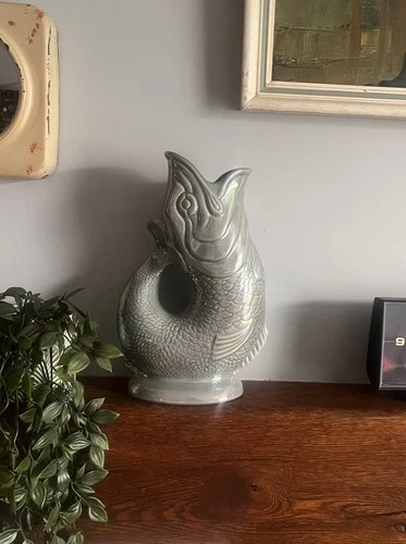 The Gluggle Jug Original Handmade Fish Design Dark Grey Lustre XL 1.2 Litre