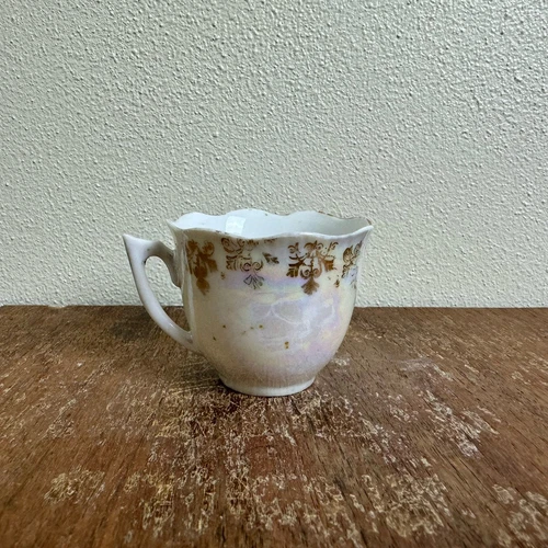Vintage Antique Bone China Porcelain Luster Gold Transferware Demitasse Mug