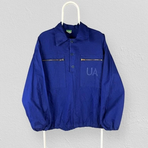 Vintage French Workwear Blue Jacket 1/4 Button Chore Pullover Mens Large