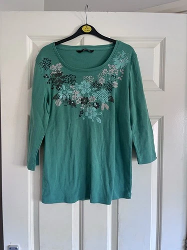Bm Casual Floral Jersey Summary Top Emerald Green Pretty Size M (Fits 10 12 14)