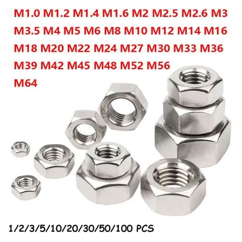 1-100pcs M 1 1.2 1.4~ M64 304 Stainless Steel Hexagon Full Nuts A2 Grade DIN 934