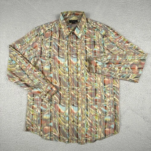 Jhane Barnes Shirt Mens Large Button Wearable Art Psychedelic Hippie Trippy