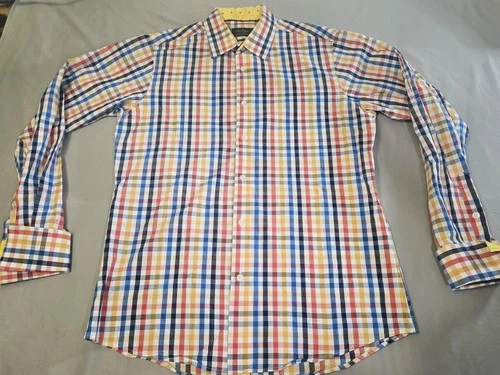 St. Lynn Shirt Mens XL Brush Popper Check Button Up Long Sleeve Organic Cotton