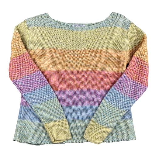 VTG Womens Spring Pastel Rainbow Striped Ramie Cotton Knit Sweater Large L