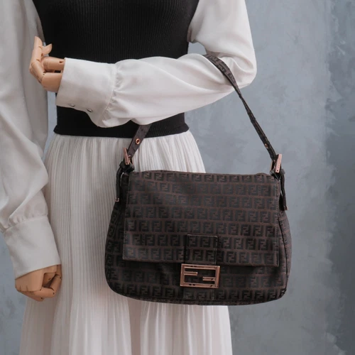 FENDI Mamma Baguette Shoulder Hand Bag Zucchino Pinkgold