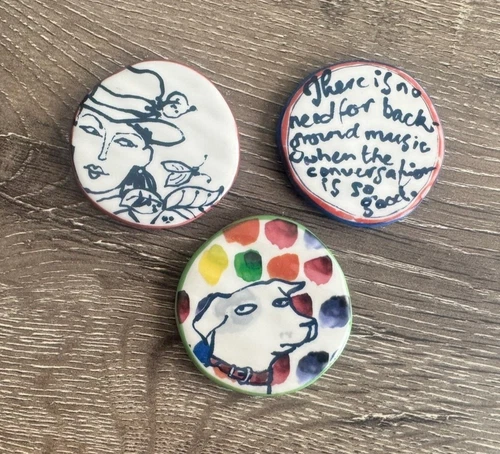Set of 3 Round Ceramic Painted Magnets