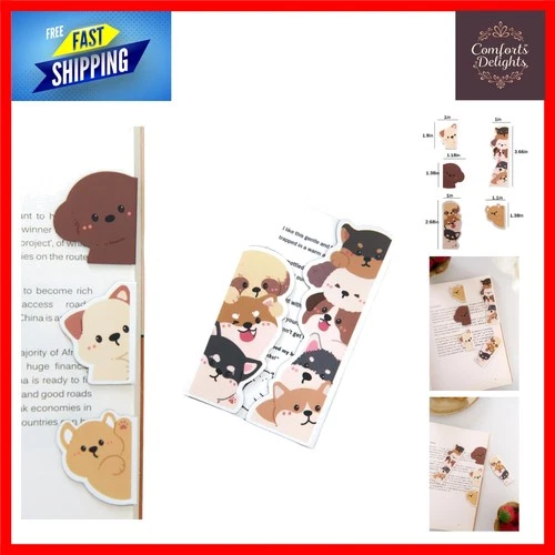 Adorable Magnetic Peeping Dog Bookmarks, Double-Sided Printing, 5-Pack