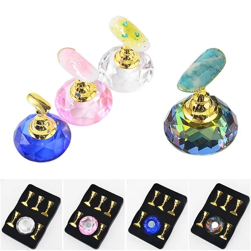 1 Stand+5 Holders Mini Nail Holder Magnetic Tip Stand Nail Art Tools Crystal A
