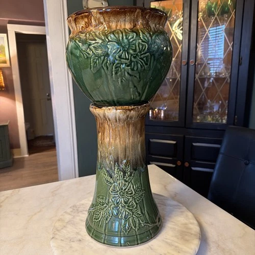 VTG Robinson Ransbottom Pottery (RRP) Majolica Dogwood Jardiniere and Pedestal