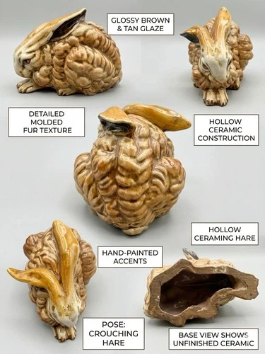 VTG Rabbit Figurine - Mid-Century Bassano Style - LargeTextured Majolica Bunny