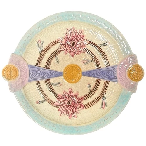 Antique English Victorian Majolica Plate Samuel Lear Narcissus Vine Rays 9-1/2"