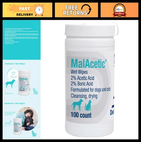 100ct Malacetic Wet Wipes - 5"x7" Dry Bath Cleansing Wipes for Pets