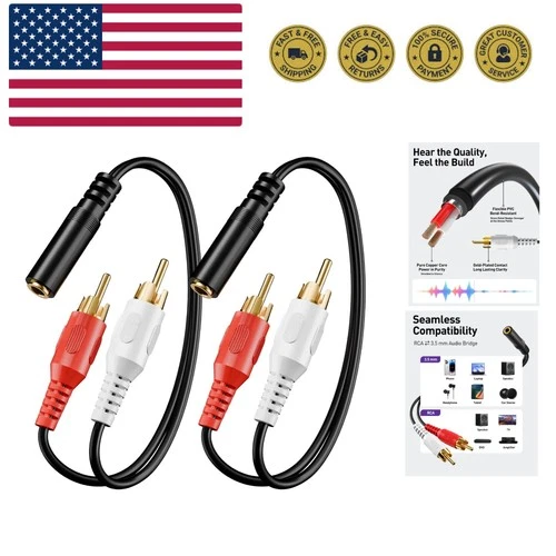 3.5mm Female to 2 RCA Splitter Male Stereo Audio Y Cable 2-Pack, Gold Plated ...