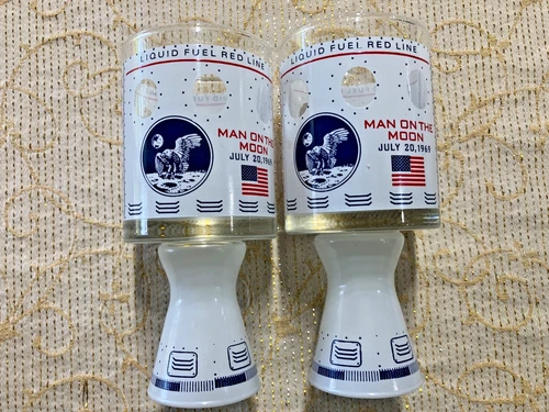 2 Vintage 1969 Apollo 11 Moonshot Man on the Moon Glass Tumblers Neil Armstrong