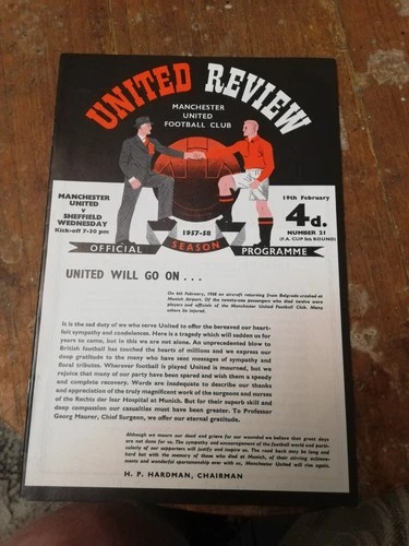 Manchester United v Sheffield Wednesday. Re-Print programme. Division 1 19/2/58.