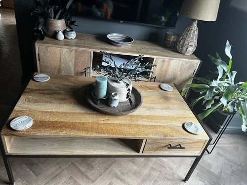 Nkuku Dasai Mango Wood And Iron Coffee Table With Drawers