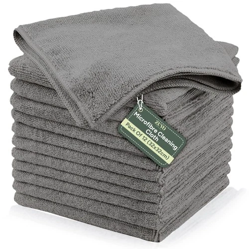 Zuvo Microfibre Cloth Pack of 12 (32x32 cm) - Ultra-soft, Highly XL, Grey