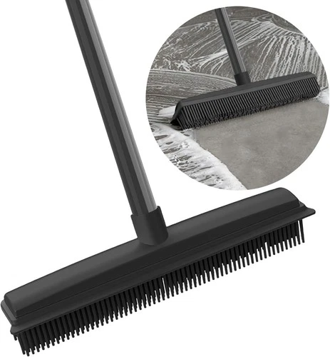 SWETHAW Rubber Broom with Squeegee Edge for Pet Hair Removal on Carpet & Floors
