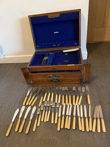 Mappin & Webb Beautiful Canteen Cutlery Set Wooden Cabinet Box Forks Ladle Spoon