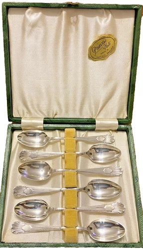 Vintage Set of 6 English Art Deco Mappin & Webb Silver Plated Tea Spoons - Cased