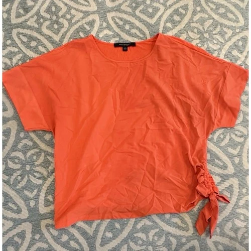 Women's Orange Short Sleeve Shirt Blouse Top Cinched Side Tie Round Neck Size L