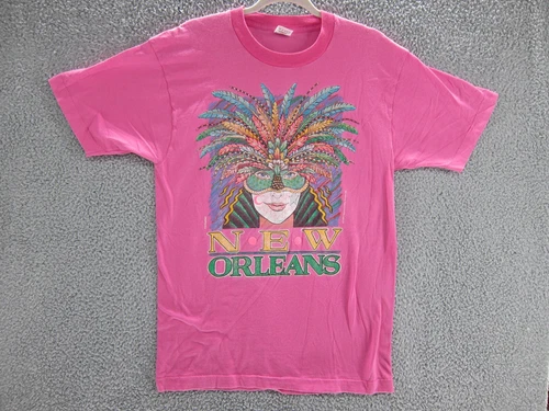 Vintage Mardi Gras Shirt Mens Large New Orleans Souvenir Pink 90s Single Stitch