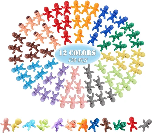 120 Mini Plastic Babies, 12 Colors Tiny Figurines 1 Inch Mardi Gras King Cake Bu