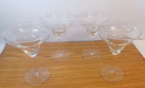 Clear Glass Margarita Glasses Unmarked SET OF FOUR (4) 6.5" Tall