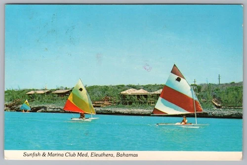 Sunfish Sailboats Marina Club Med Eleuthera Bahamas Postcard Plastichrome