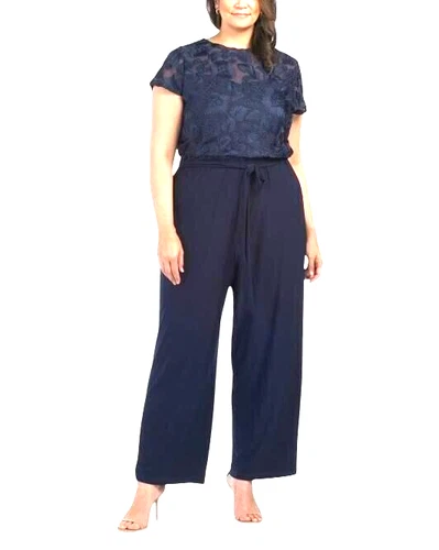 Marina Womens Navy Blue Short Lace Sleeve Wide Leg Jumpsuit Plus Sz 3X New