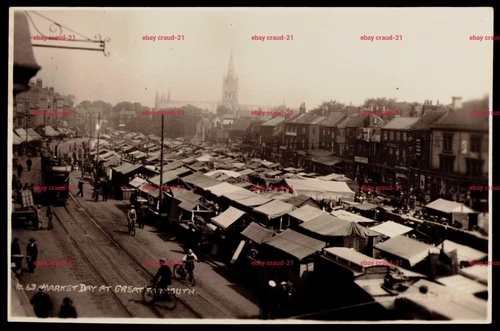 GREAT YARMOUTH, Norfolk - Market Place with Stalls, Tram & Church View Postcard