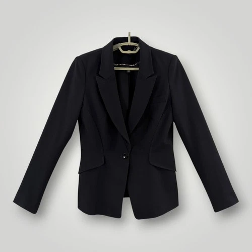 White House Black Market Blazer Women Size 6 Black Stretch Lined Jacket 1 Button