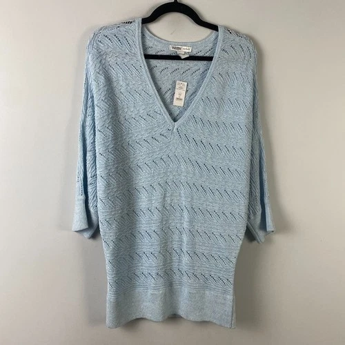 White House Black Market Outlet Elbow Dolman Sleeve V Neck Sweater XL Blue