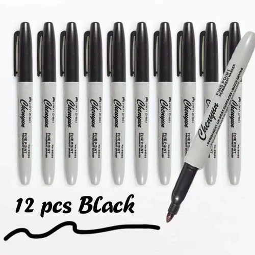 10 X Black Marker Pens Fine Bullet Tip Permanent Markers Fine Tip FREE FAST POST