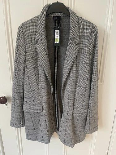Marks And Spencer Ladies Black Checked Jersey Blazer Size 12
