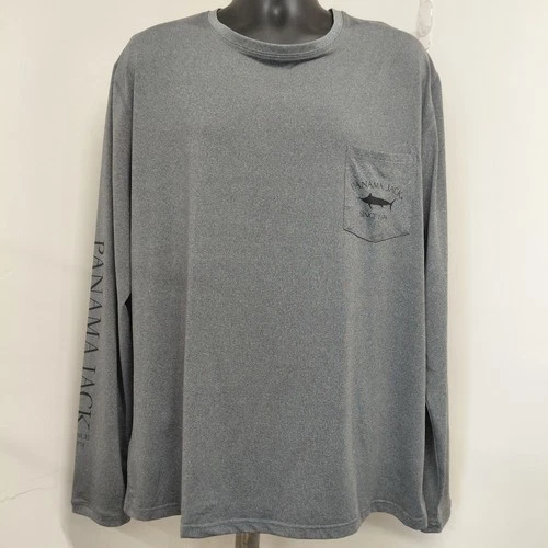 Panama Jack Blue Marlin Fishing Shirt Men's Size XXL Gray Front Pocket UPF 50