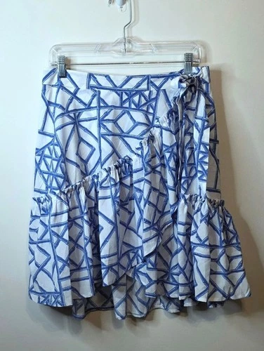 Vineyard Vines Marlin Blue White Bamboo Latice Wrap Skirt Ruffle Size 10